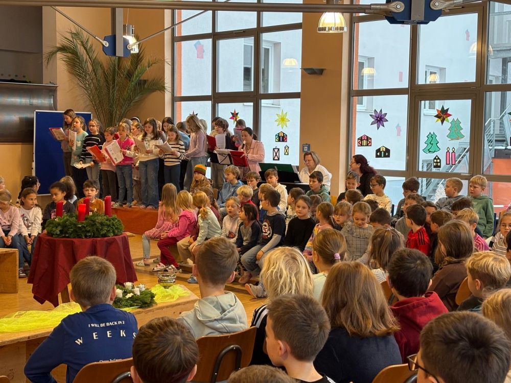 Stadtpfarrer Magnus König erzählte uns anschließend eine kurze Geschichte, welche auch zum Nachdenken anregen soll. Wie kann ich die Zeit des Wartens auf die Ankunft von Gottes Sohn besonders nutzen? Was ist für uns Menschen wirklich wichtig? Das Wertvolle dieser besonderen Zeit ist das Zusammenkommen, Gespräche und auch, Licht in die Welt zu tragen. Mit dem gemeinsamen Lied „ Kinder tragen Licht in´s Dunkel“ machten wir uns alle auf den Weg, Hoffnung, Freude und auch Frieden in die Welt zu bringen. Nach der Segnung der Adventskränze schlossen wir die Feier mit dem „Vater unser“ und dem Schlusslied „Advent is a Leuchten“, welches wunderschön vom Chor unter der Leitung von Frau Andrea Frauenauer, vorgetragen wurde.