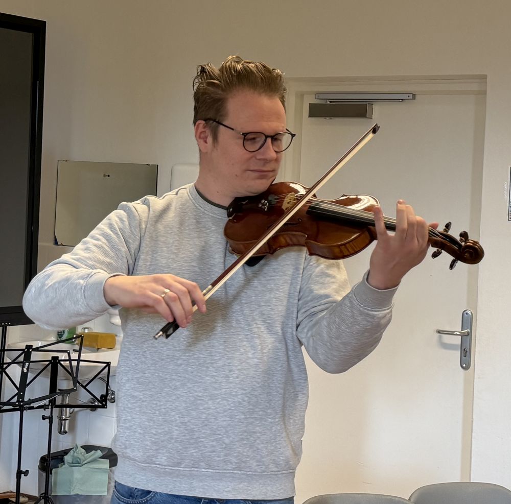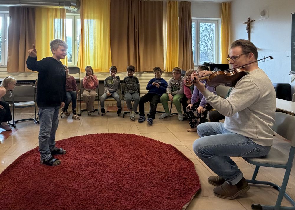 Herr Hahn bot uns auch Einblicke in den Aufbau einer Geige und in die Arbeit des Dirigenten. Besonders aufregend war, dass wir ihn bei seinem Spiel dirigieren durften. Schnell, langsam, laut, leise,...