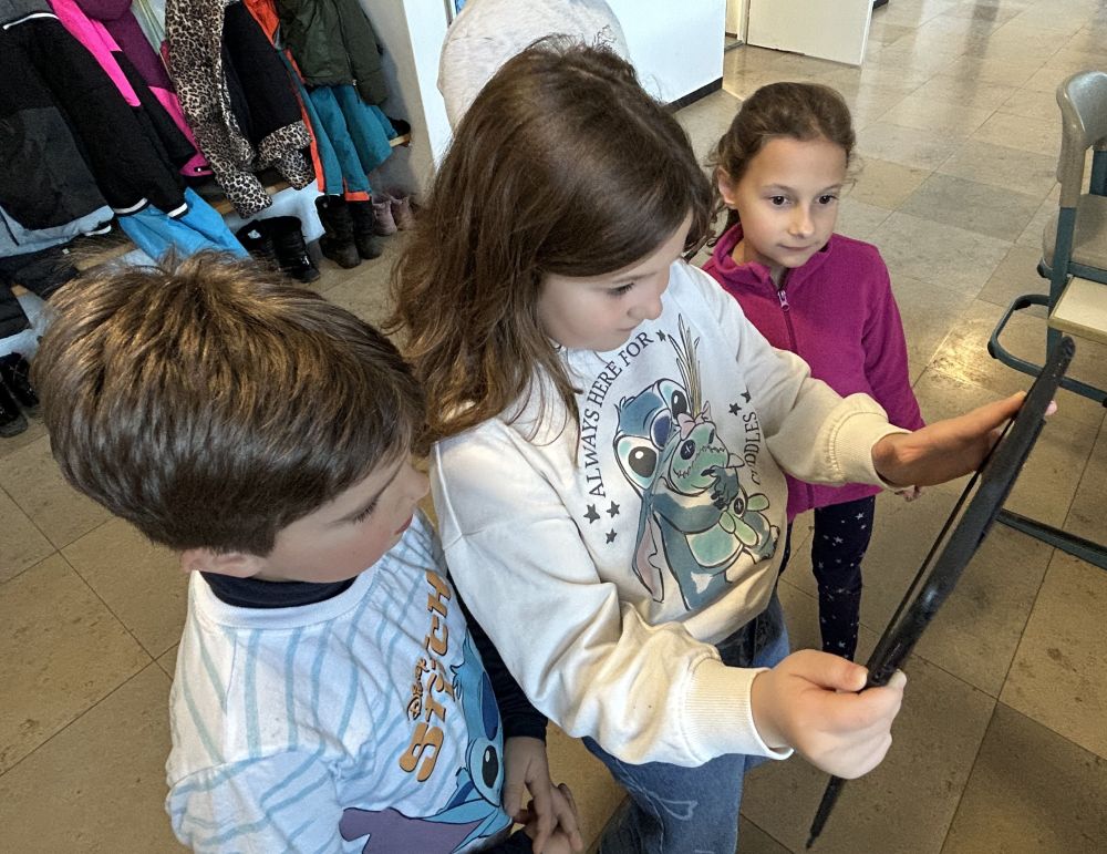 Sie scannten den QR-Code des Startbildes, hörten sich die Strophe an und suchten anhand des Inhaltes das nächste Bild. So ging es weiter, bis die Kinder die letzte und finale Zeichnung erreicht hatten. Abschließend wurde gemeinsam eine weiterführende Aufgabe gelöst, indem in partnerschaftlicher Zusammenarbeit passende Bilder zu den jeweiligen Textabschnitten geklebt wurden.