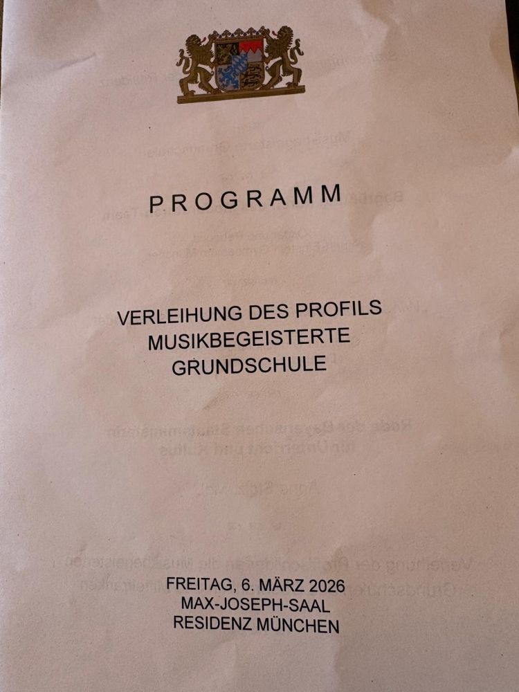In der Residenz in München wurde unserer Schule durch Kultusministerin Anna Stolz das Zertifikat "Musikbegeisterte Grundschule" verliehen.