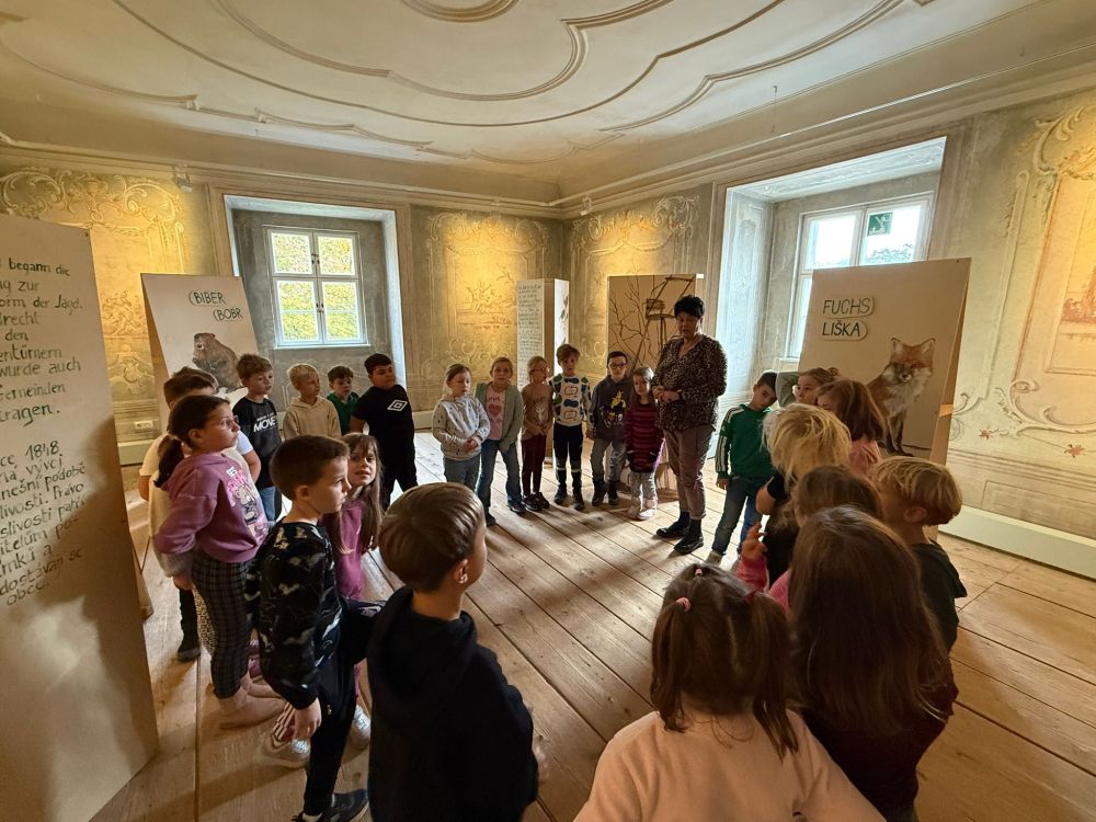 Im Rahmen des Schulprogramms "Film- und Naturerlebnis" marschierten die 2.Klassen heute gut gelaunt ins Museum "Jagd Land Fluss" im nahegelegenen Schloss Wolfstein- von welchem unsere Schule sogar den Namen trägt. Es wurden die Filme "Ernähre die Erde!" und "Werde zum Lebensmittelretter!" angeschaut. Während eine Gruppe die Kurzfilme genoss, durfte die zweite eine Führung mit der Museumspädagogin Ramona Kesten durch das tolle Museum erleben.