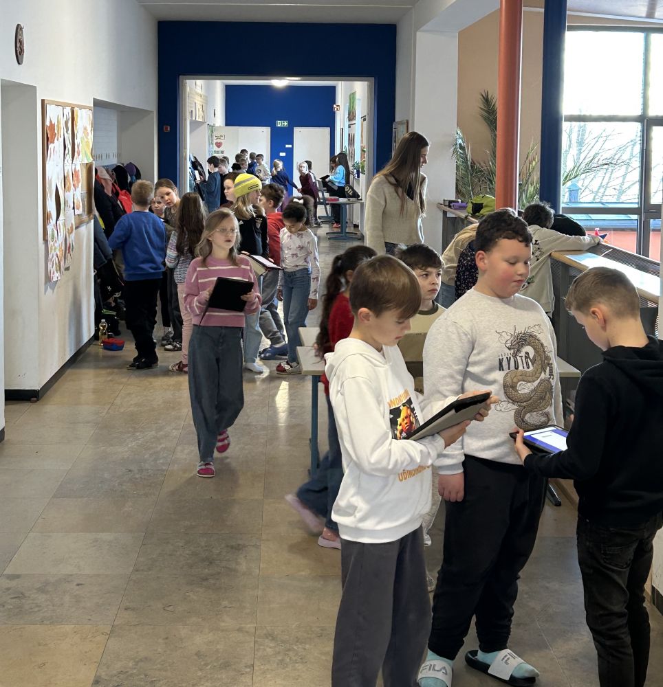 Die Großen führten die Kleineren in die richtige Nutzung der schuleigenen Tablets ein und gaben hilfreiche Tipps. Die Kinder lernten von und miteinander. Die beiden Klassen zeigten vorbildlich, wie Werteerziehung funktionieren kann. Hilfsbereitschaft, Wertschätzung, Zusammenhalt und Rücksichtnahme wurden gelebt und ermöglichten eine tolle, klassenübergreifende Unterrichtseinheit.