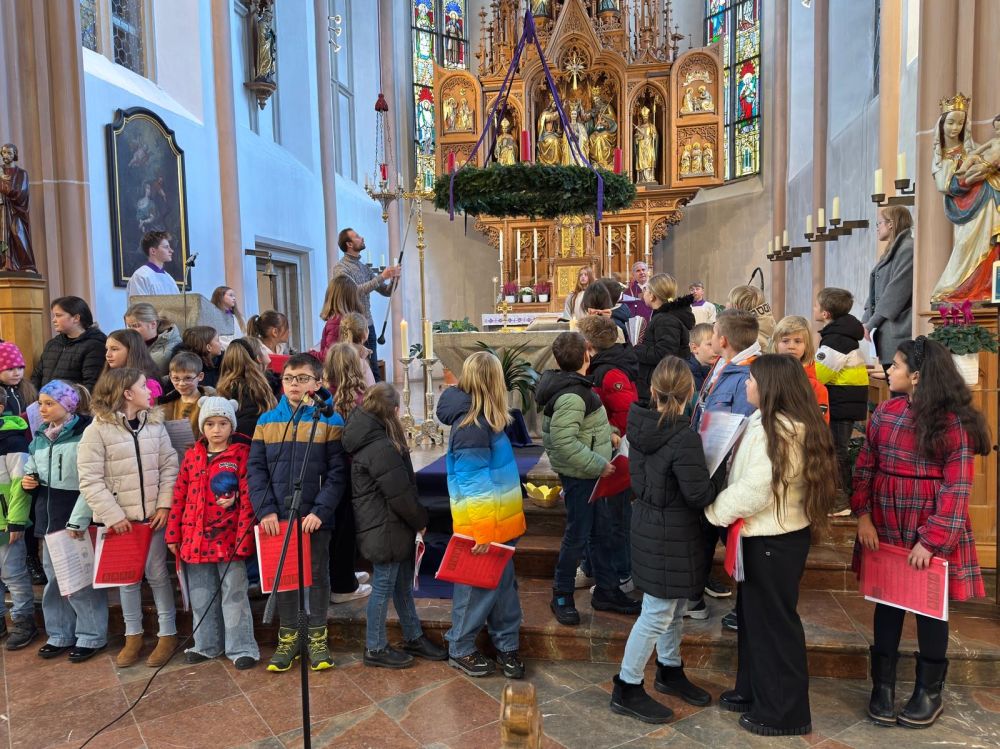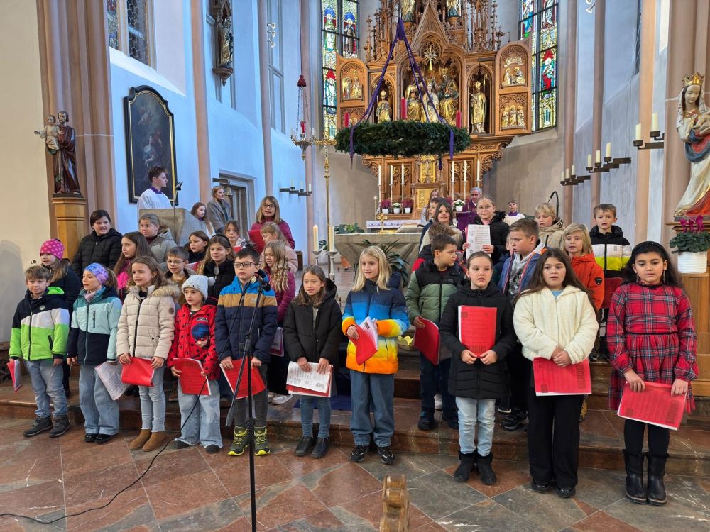 Am 1. Advent fand in der Stadtpfarrkirche Freyung ein Familiengottesdienst statt. Die Grundschule am Schloss Wolfstein beteiligte sich wie in den letzten Jahren auch an der Mitgestaltung der Messe. Im Unterricht lernten die Kinder bei Frau Frauenauer die Lieder kennen und diese auch gut zu singen.