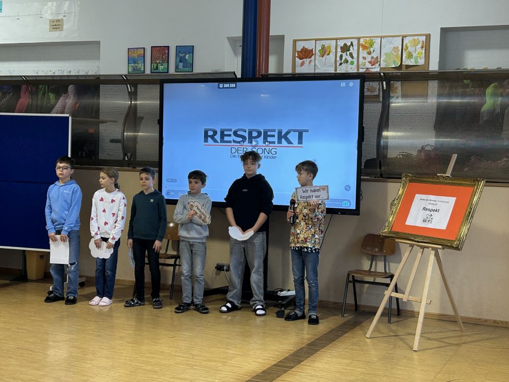 Mit dem rhythmischen Lied „Respekt“ brachten die ViertklässlerInnen uns den neuen Wert auch gesanglich näher.