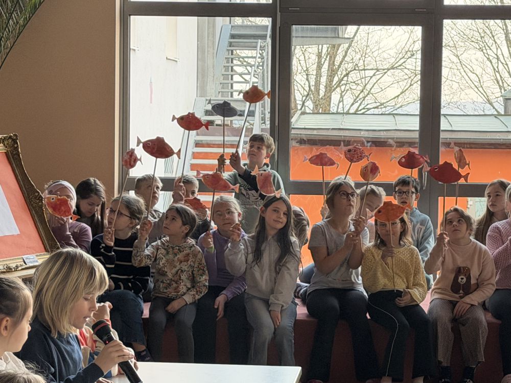 Heute stellte uns die Klasse 3a mit Frau Bauer den Wert "Zusammenhalt" vor. Auf der Basis des Buches "Swimmy" von Leo Lionni machten die Kinder darauf aufmerksam, auf was es beim Zusammenhalten ankommt, und was gemeinsam bewirkt werden kann.