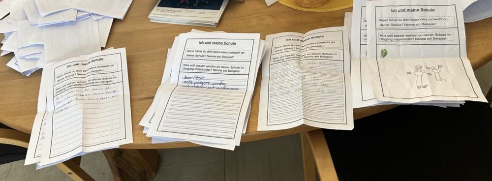 Dazu durften sich alle Kinder anonym und schriftlich äußern, was ihnen am Zusammenleben miteinander an der Schule gut bzw. nicht so gut gefällt.